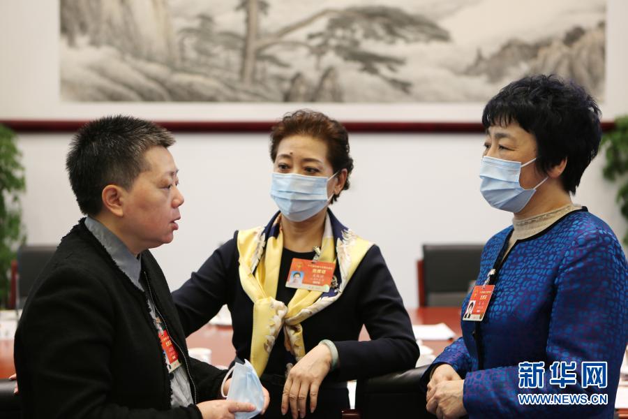 3月6日,十三屆全國人大四次會議天津代表團的孔曉艷代表(左)、關(guān)牧村代表(中)和馬杰代表在會議間隙交流討論。新華社記者 吳雨 攝