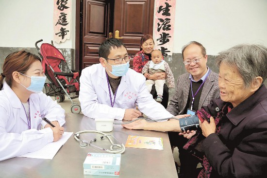 去年11月13日,竹山縣樓臺鄉衛生院組織醫務人員進村開展“一對一”健康回訪和體檢。(視界網 陳昌榮 張強 攝)