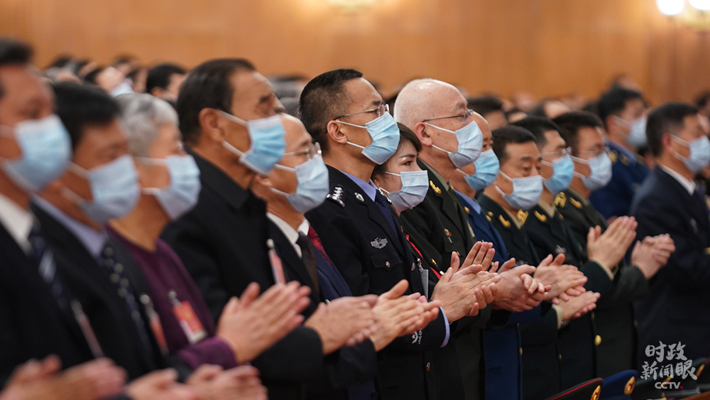 △閉幕會上,習近平等黨和國家領導人步入會場時,全場起立鼓掌。(總臺國廣記者李晉拍攝)