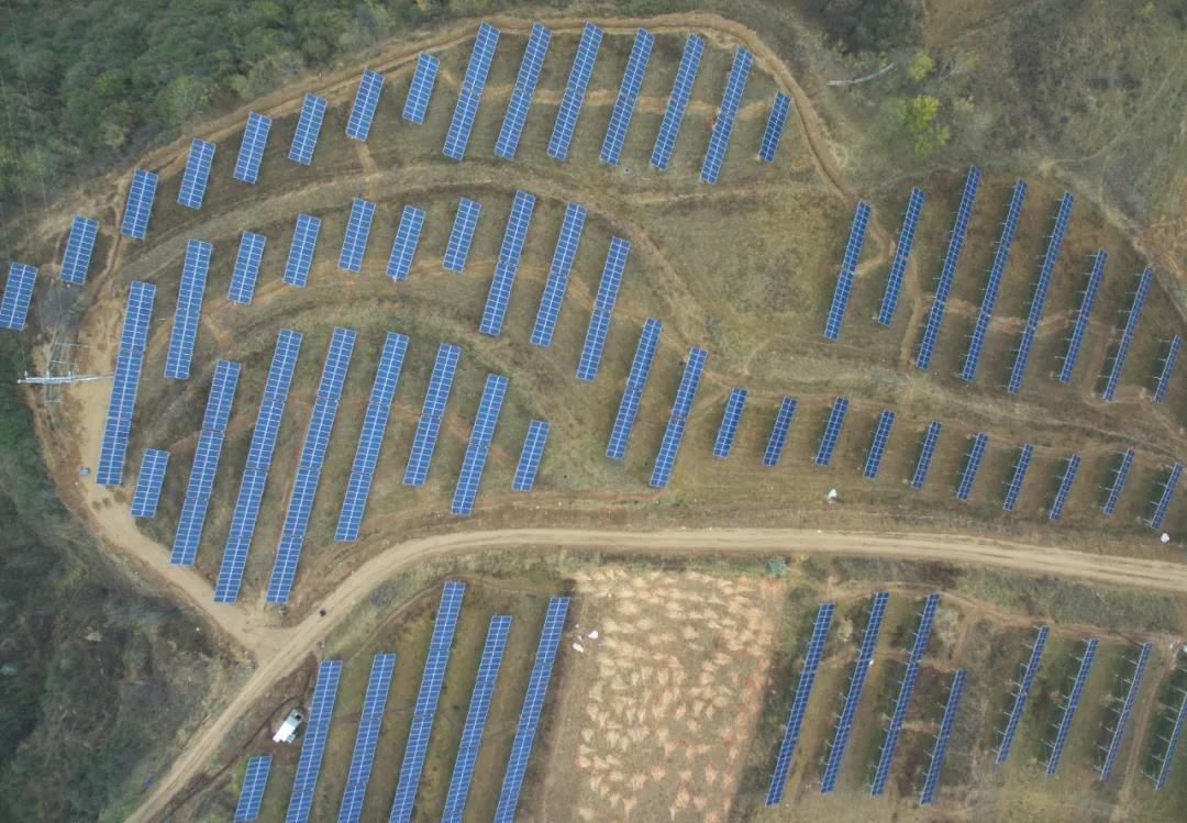 ▲陜西延安,航拍安塞區(qū)化子坪鎮(zhèn)楊園村光伏扶貧電站一角。