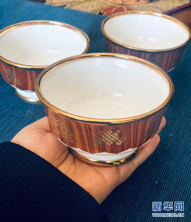 這是出席2015年西藏自治區成立50周年慶祝活動的中央代表團贈送給西藏農牧民的骨質瓷酥油茶杯套裝(2月5日攝)。新華社記者 孫非 攝