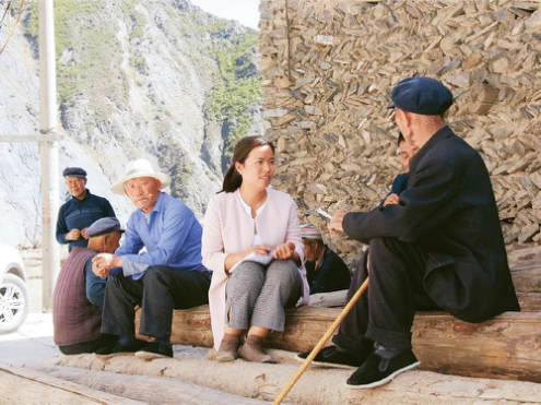△2018年4月,甘肅省舟曲縣扶貧辦副主任張小娟(右二)在下鄉(xiāng)時(shí)向群眾了解情況。2019年10月7日,在扶貧下鄉(xiāng)返程途中,張小娟因乘坐的車輛墜河不幸殉職。