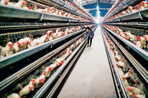 △通過因地制宜發(fā)展特色產(chǎn)業(yè),貴州畢節(jié)市七星關(guān)區(qū)五里坪村農(nóng)民逐漸脫貧走上了小康路。圖為當(dāng)?shù)剞r(nóng)戶在一個(gè)屬于精準(zhǔn)扶貧項(xiàng)目的養(yǎng)雞場內(nèi)工作。