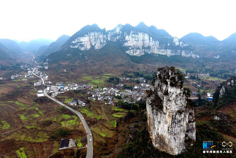 航拍貴州納雍縣化作鄉槍桿巖村的通村公路。新華網 周遠鋼攝