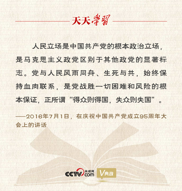 習(xí)近平總書記在“七一”重要講話中指出:“堅(jiān)持不忘初心、繼續(xù)前進(jìn),就要堅(jiān)信黨的根基在人民、黨的力量在人民,堅(jiān)持一切為了人民、一切依靠人民,充分發(fā)揮廣大人民群眾積極性、主動性、創(chuàng)造性,不斷把為人民造福事業(yè)推向前進(jìn)。” 他借“得眾則得國,失眾則失國”這句兩千多年前的古語,闡釋了“人民立場”這個中國共產(chǎn)黨的根本政治立場。