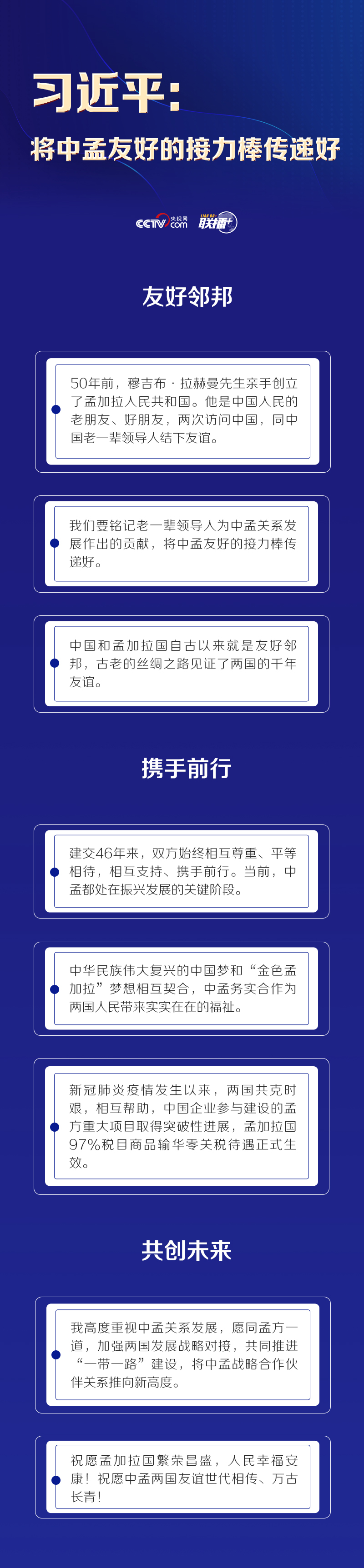 聯(lián)播+3月17日,國家主席習(xí)近平向孟加拉國紀(jì)念“國父”穆吉布·拉赫曼誕辰100周年暨慶祝獨(dú)立50周年活動(dòng)發(fā)表視頻致辭,代表中國政府和中國人民向哈米德總統(tǒng)、哈西娜總理以及孟加拉國政府和人民,致以誠摯的問候和良好的祝愿。
