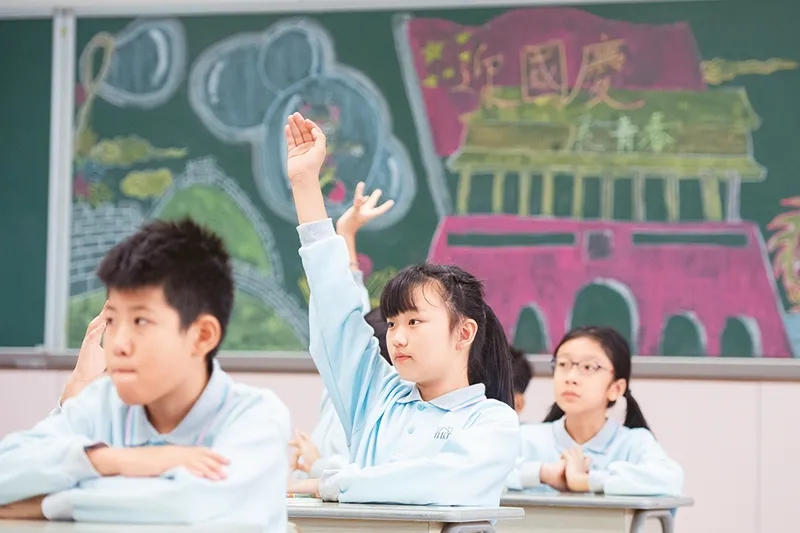 澳門中小學(xué)學(xué)生使用的教材《品德與公民》中有豐富的關(guān)于國情、國旗、國歌的內(nèi)容,學(xué)生們可以從中學(xué)到很多關(guān)于祖國的知識,培養(yǎng)對祖國和澳門的感情。圖為2019年11月25日,澳門濠江中學(xué)附屬英才學(xué)校的學(xué)生在課堂上舉手回答老師提問。 新華社記者 張金加/攝