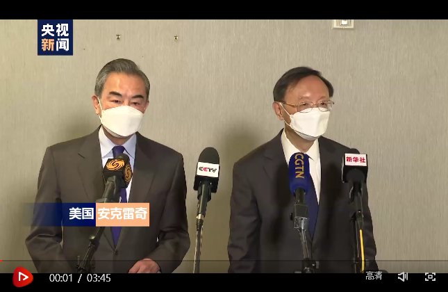 3月18日至19日,中美高層戰(zhàn)略對話在安克雷奇舉行。對話結(jié)束后,中共中央政治局委員、中央外事工作委員會辦公室主任楊潔篪、國務(wù)委員兼外長王毅接受了媒體采訪。