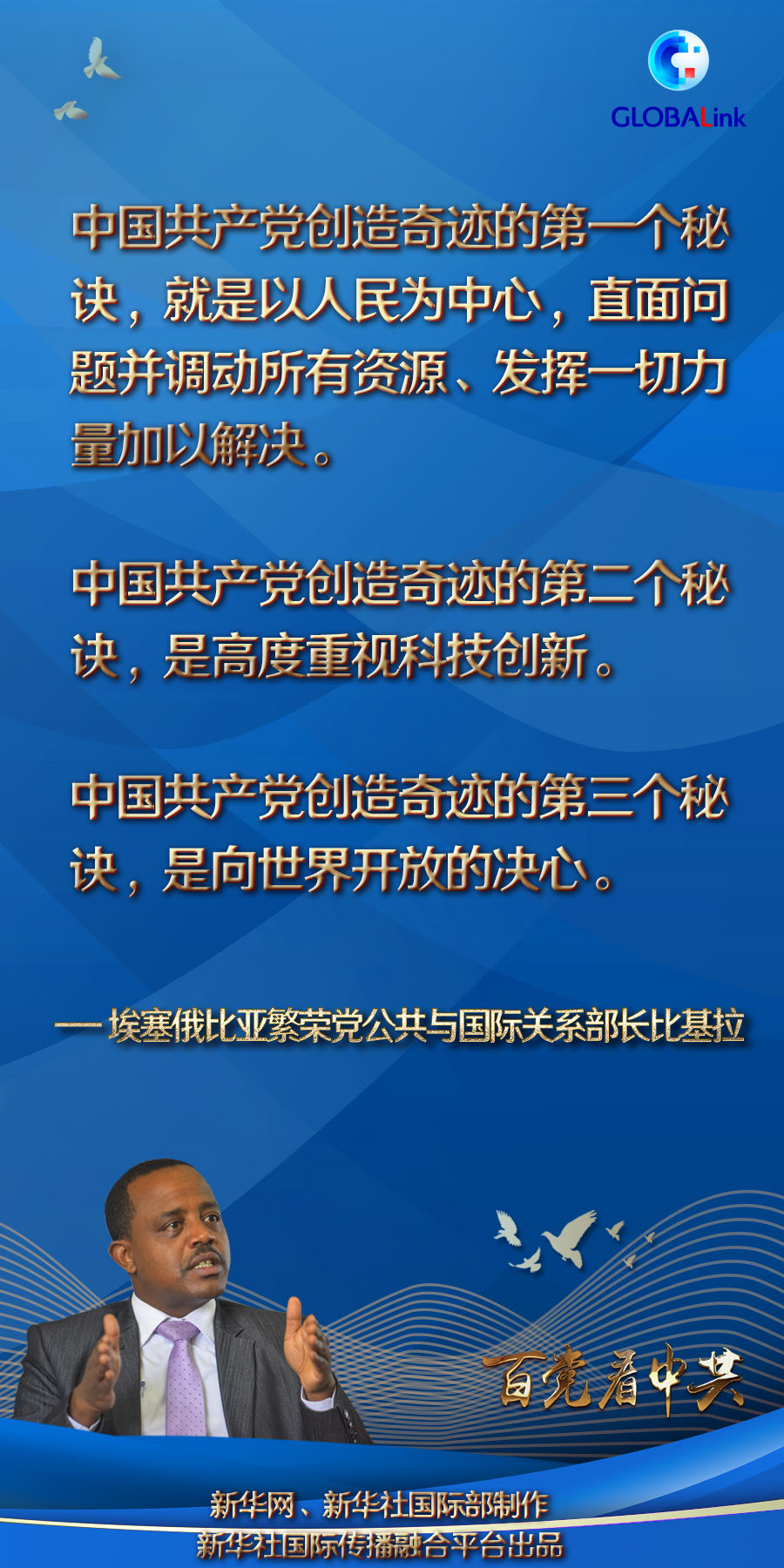 全球連線丨“以人民為中心是中國共產黨取得成功的關鍵”——訪埃塞俄比亞繁榮黨公共與國際關系部長比基拉