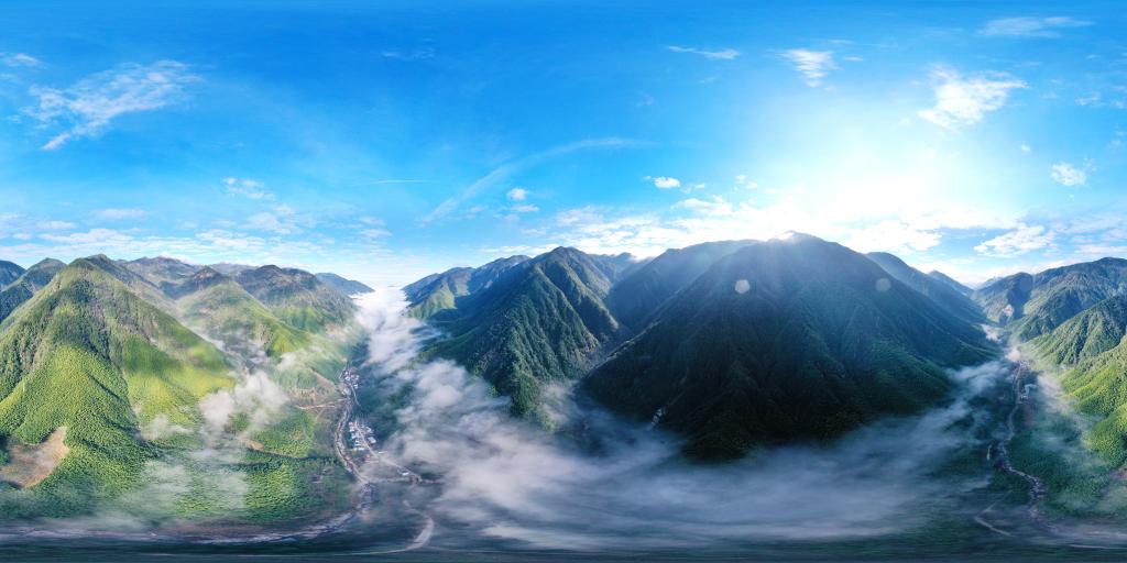 2020年12月1日,武夷斷裂帶峽谷內(nèi)云霧繚繞,村莊若隱若現(xiàn)(無人機拼接照片)。新華社記者姜克紅攝