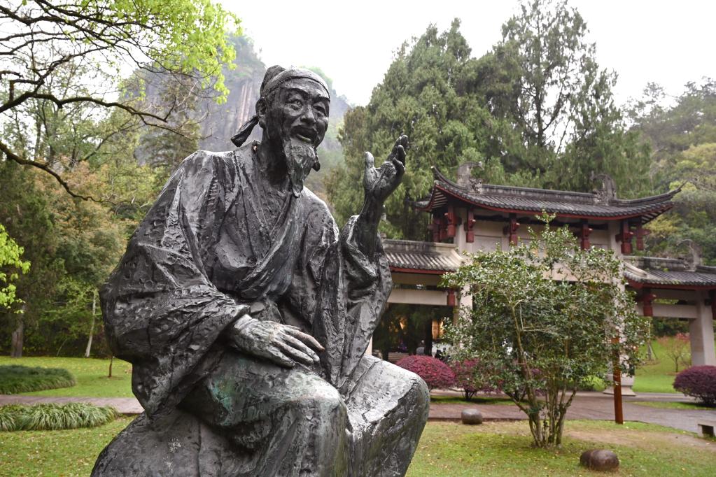 這是福建武夷山朱熹園內(nèi)的朱熹雕像(2021年3月21日攝)。 新華社記者姜克紅攝