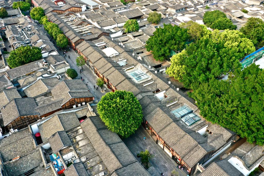 福州三坊七巷文化街區(qū)的古厝綠樹(2021年3月17日攝,無人機照片)。 新華社記者姜克紅攝