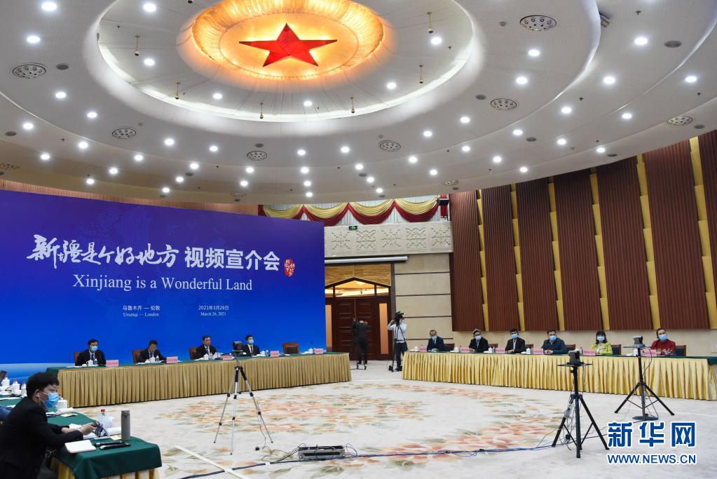 這是3月26日拍攝的“新疆是個(gè)好地方”視頻宣介會(huì)現(xiàn)場(chǎng)。新華社記者 丁磊 攝