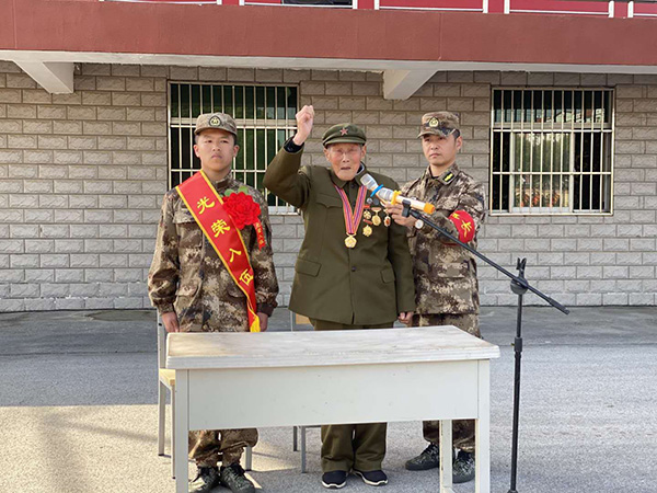 受老人的影響,孫子李毅楊自小愛好武術,立志參軍入伍、報效國家。2014年開始在河南登封少林武校學習,2020年9月考入襄陽汽車職業技術學院,今年19歲的他便應征報名,經過體檢、政考和嚴苛的役前教育訓練后,順利圓夢軍營。