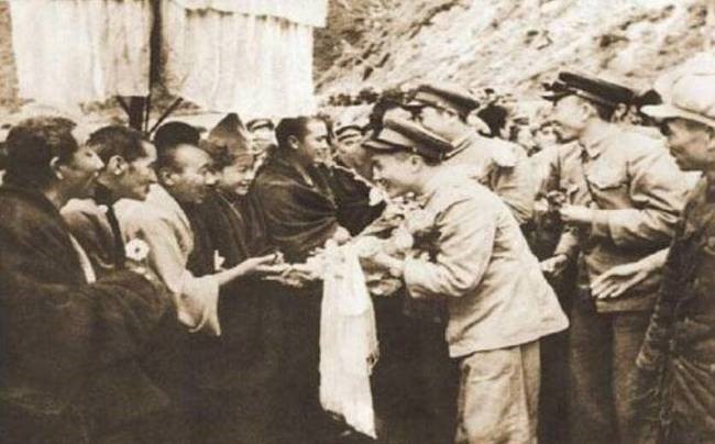 △進(jìn)藏解放軍受到西藏人民的歡迎