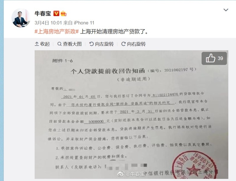 對觸碰“紅線”的人和機構,通知明確,一旦發現貸款被挪用于房地產領域的將立刻收回貸款,壓降授信額度,并追究相應法律責任。