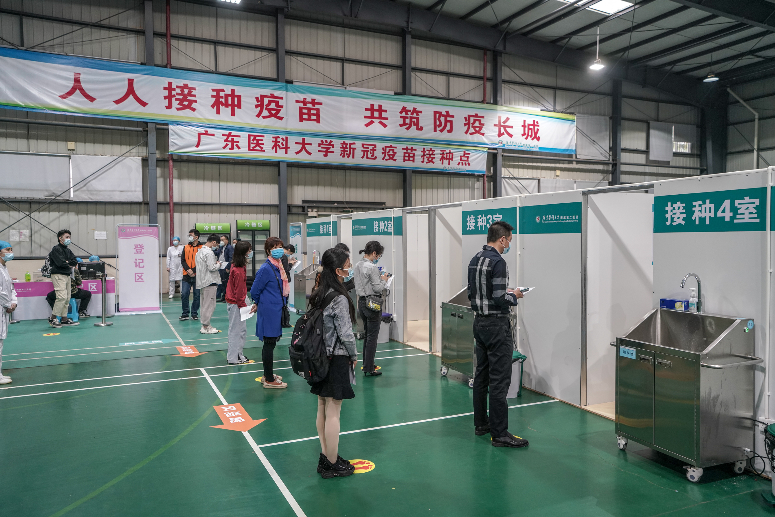 從3月22日開始,在短短3天內,廣東醫科大學與廣東醫科大學附屬第二醫院嚴格按照國家、省、市有關新冠疫苗接種要求,將體育館改建為疫苗接種點,現場設置候診區、登記區、接種區、留觀區、冷鏈區、應急處置區等六個區域,為接種工作順利開展做好準備。廣東醫科大學有關負責人介紹,學校將按照“應接盡接”原則,確保18-59歲符合接種條件的師生全部接種。