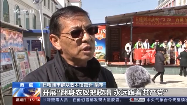 日喀則市群眾藝術(shù)館館長 桑布:開展“翻身農(nóng)奴把歌唱,永遠跟著共產(chǎn)黨”群眾性文藝演出,主要目的是把西藏的新的生活、好政策、新的大成就,通過文藝表演方式來展示給廣大人民群眾。
