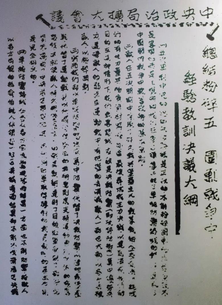 為了盡快向各級干部傳達遵義會議精神,張聞天又寫了一個2000多字的《中央政治局擴大會議總結粉碎五次“圍剿”戰(zhàn)爭中經(jīng)驗教訓決議大綱》,簡明扼要地介紹了《遵義會議決議》的要點。