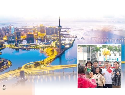 伶仃洋畔,歡歌笑語(yǔ)。當(dāng)天,澳門(mén)舉行了“邁向美好明天”大巡游。4500多人組成了21個(gè)花式表演方陣、24輛大型花車(chē)及群眾方陣,規(guī)模空前。