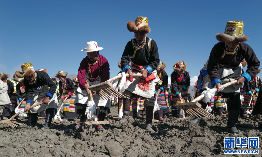 3月16日,西藏山南市乃東區(qū)克松社區(qū)居民在參加春耕儀式。新華社記者 孫瑞博 攝