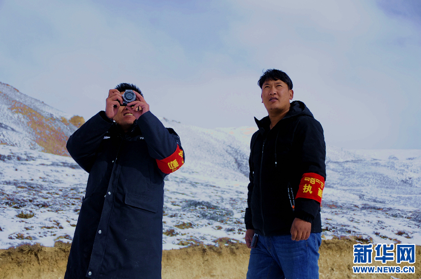 阿里地區(qū)楚魯松杰鄉(xiāng)干部群眾在牧場(chǎng)例行巡邏(2019年1月8日攝)。新華社記者 陳尚才 攝