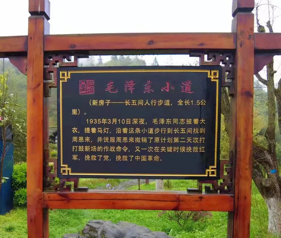 1935年3月10日夜,在茍壩村一條崎嶇狹窄的小道上,毛澤東同志手提馬燈,連夜去找周恩來同志再商紅軍將要進行的一場戰(zhàn)役的作戰(zhàn)計劃。一場戰(zhàn)役看起來不是重大決策,但當(dāng)時當(dāng)事,這場戰(zhàn)役與中國革命命運緊緊相連,因而事關(guān)重大。歷史的“關(guān)節(jié)點”常常出現(xiàn)在不經(jīng)意間,茍壩的這條“小道”連著的正是中國革命的“正道”。今天,人們將毛澤東同志走過的這條小道,親切地稱為“毛澤東小道”。