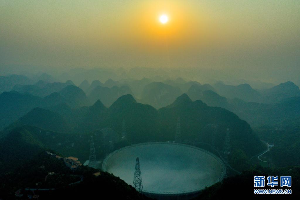 3月31日清晨拍攝的“中國天眼”全景(維護(hù)保養(yǎng)期間拍攝,無人機(jī)照片)。