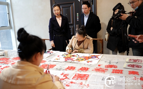 文物館邀請的民間藝術家現場剪紙、繪畫。(中國臺灣網 李杰 攝)