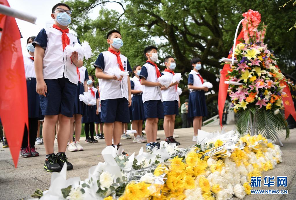 4月2日,小學生在廣州起義烈士紀念碑前舉行祭奠活動。
