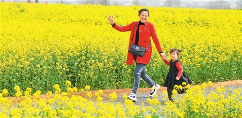 河北省沙河市金沙河紅薯嶺產業園萬畝油菜花盛開,吸引眾多游客踏青賞花。 趙永輝攝
