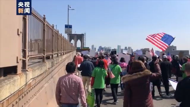 央視記者 徐德智:游行的隊伍是已經走上了布魯克林大橋,實際上抗議者希望通過他們今天這個活動,能讓更多人聽到他們的聲音,讓他們能更加重視亞裔團體在美國的安全。