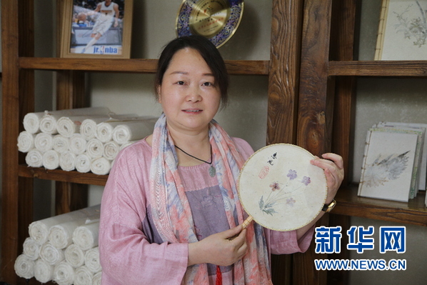 “花茂人家”文化工坊負責(zé)人張勝迪向游客展示扇子。新華網(wǎng) 蔡連素 攝