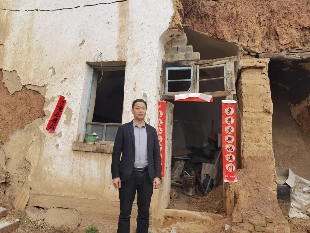 △張俊成在兒時住過的土窯前(馬曉媛/攝)