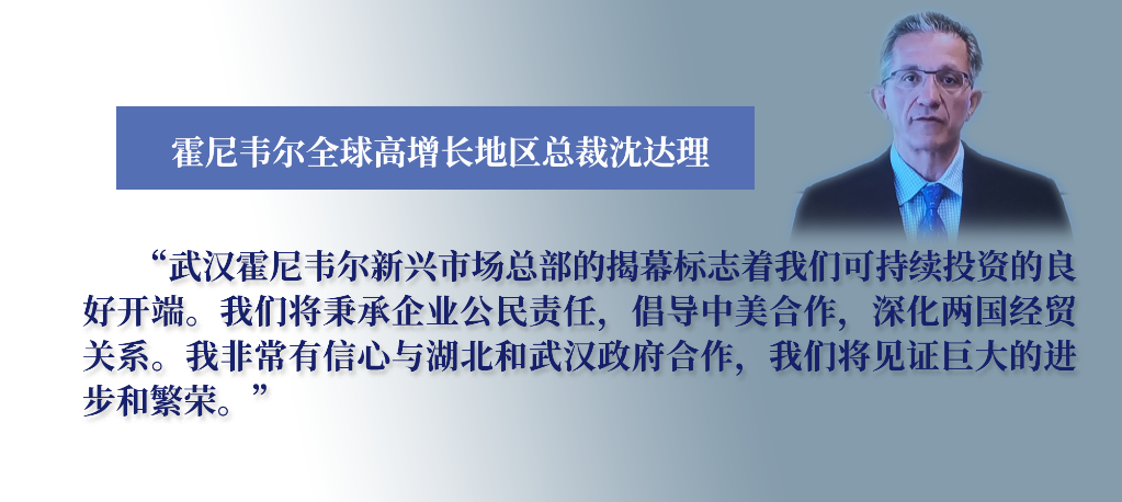 霍尼韋爾全球高增長地區總裁沈達理闡述了投資湖北的原因:湖北地理位置優越,是中國重要的工業基地,是技術創新的策源地,可輻射整個中國,成為從中國沿海市場進軍中西部新興市場的根據地。