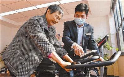 安徽省肥西縣上派鎮(zhèn)某居家養(yǎng)老服務(wù)中心,工作人員指導(dǎo)老年居民鍛煉身體。徐 勇攝(影像中國(guó))