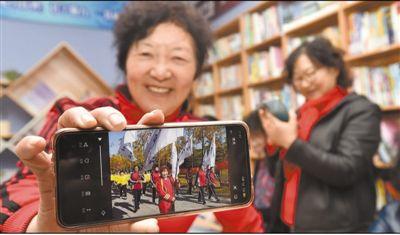 江蘇省揚(yáng)州市邗江區(qū)新盛社區(qū)圖書(shū)館內(nèi),一位大媽展示自己的視頻作品。莊文斌攝(影像中國(guó))