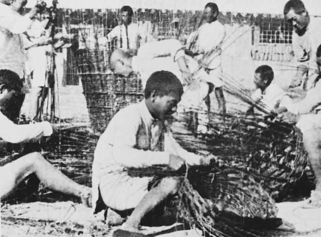 1942年,開發南泥灣的戰士們用柳條編筐,克服物資缺乏帶來的種種困難。(新華社資料照片)
