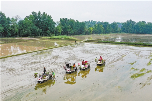4月19日,四川省廣安市鄰水縣裕東糯谷種植專業合作社農機員在用插秧機栽插糯谷秧苗。該合作社是一家農業生產全程機械化合作組織,專業從事糧食、蔬菜種植,2020年實現利潤近150萬元。邱海鷹攝(中經視覺)