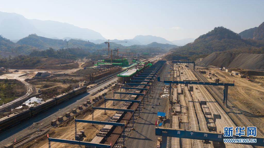 這是2020年12月29日在老撾瑯勃拉邦拍攝的中老鐵路瑯勃拉邦車站鋪軌現(xiàn)場(chǎng)(航拍照片)。新華社發(fā)(老中鐵路有限公司供圖)