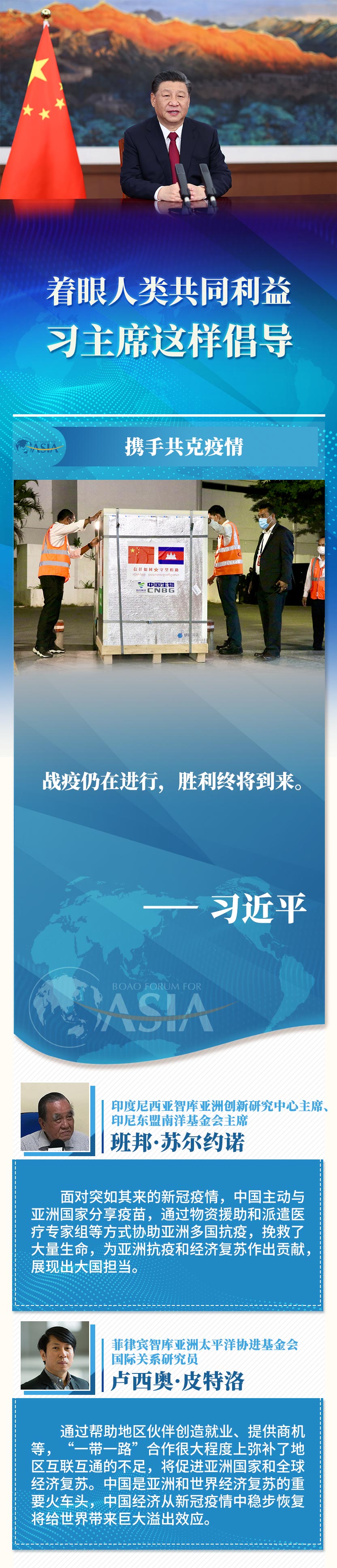 新華社北京4月21日電 博鰲亞洲論壇2021年年會開幕式20日上午在海南博鰲舉行,國家主席習近平以視頻方式發表題為《同舟共濟克時艱,命運與共創未來》的主旨演講。多國人士表示,習近平主席的演講著眼于人類共同利益,為各國攜手共克疫情、加強全球治理、高質量共建“一帶一路”、構建人類命運共同體注入新的強大動力。