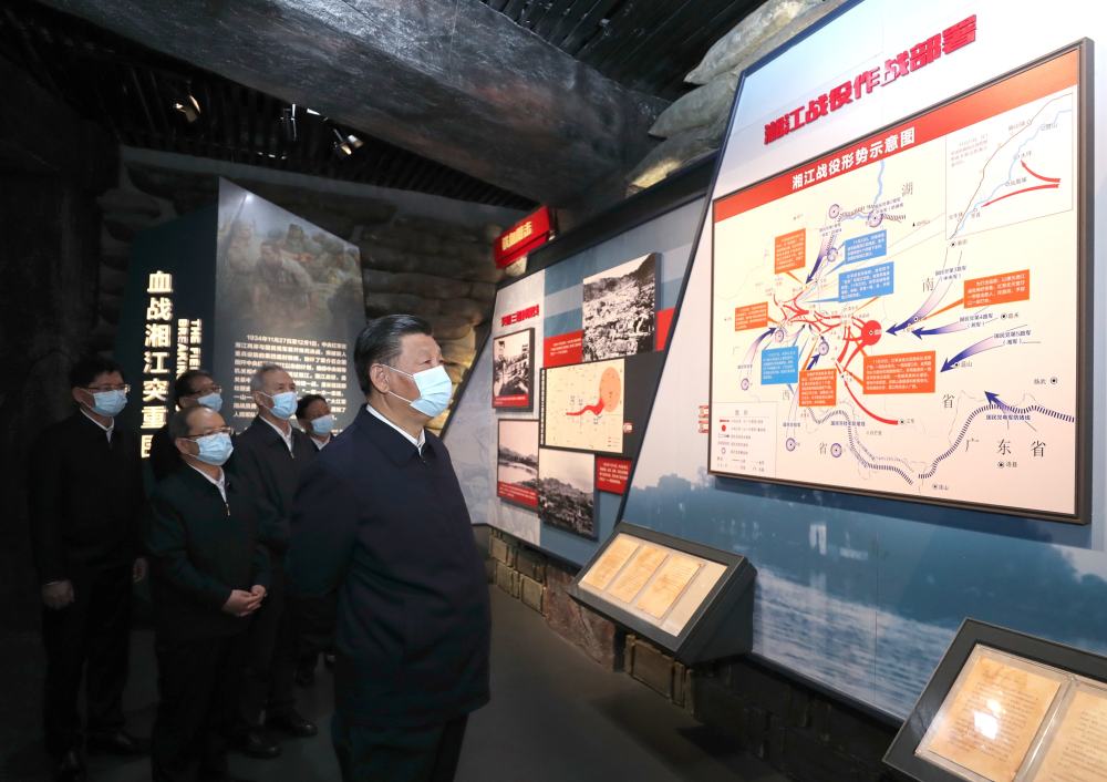 ↑2020年9月16日,習近平在湖南郴州市汝城縣文明瑤族鄉沙洲瑤族村“半條被子的溫暖”專題陳列館,了解當地加強基層黨的建設、開展紅色旅游和紅色教育情況。
