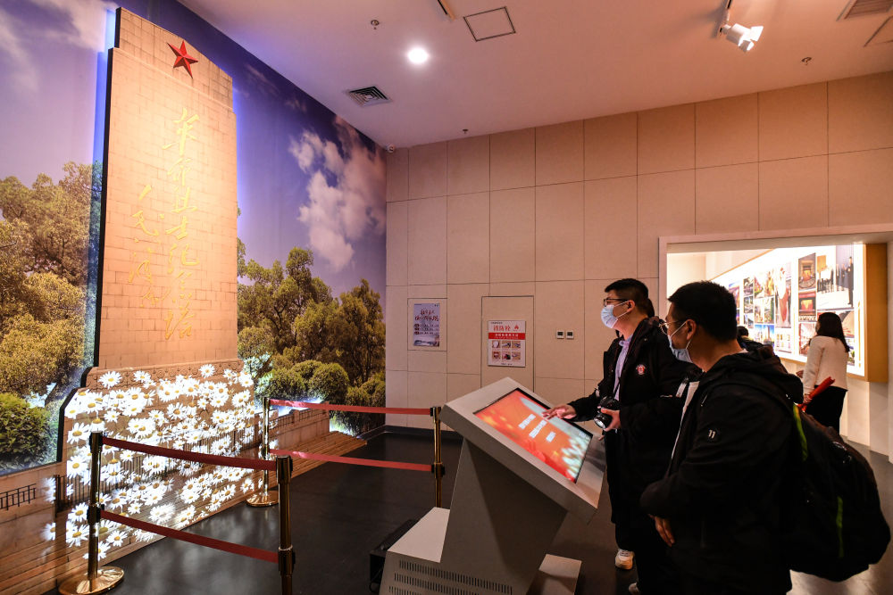 ↑2021年4月2日,參觀者在山東濟南戰役紀念館內學習黨史、緬懷先烈。
