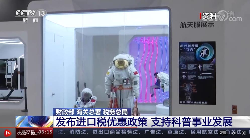央視網(wǎng)消息:財政部、海關(guān)總署、稅務(wù)總局日前發(fā)布進(jìn)口稅收優(yōu)惠政策,支持科普事業(yè)發(fā)展。