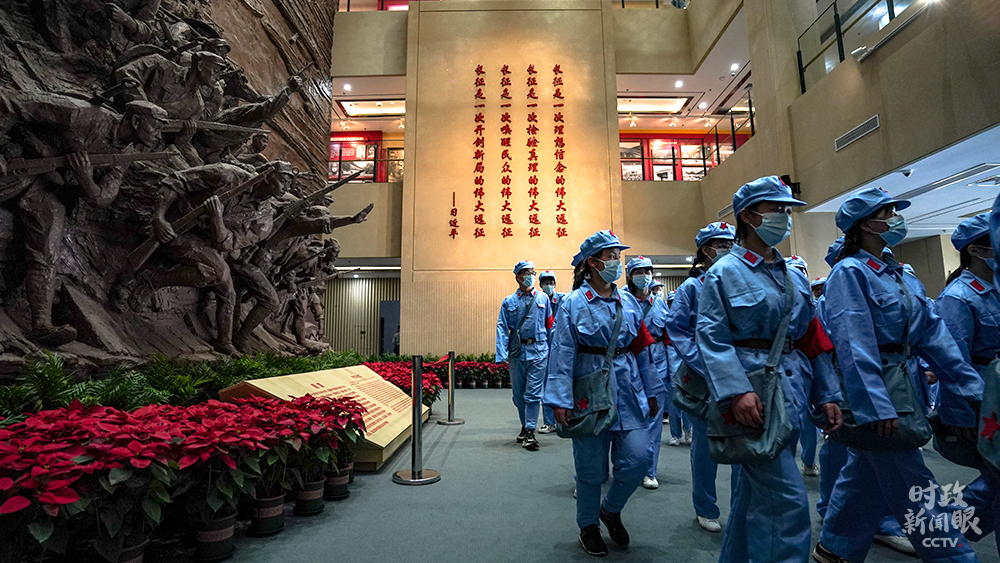 △紅軍長征湘江戰役紀念館內,參加“紅色教育”的學生們。(總臺國廣記者李晉拍攝)