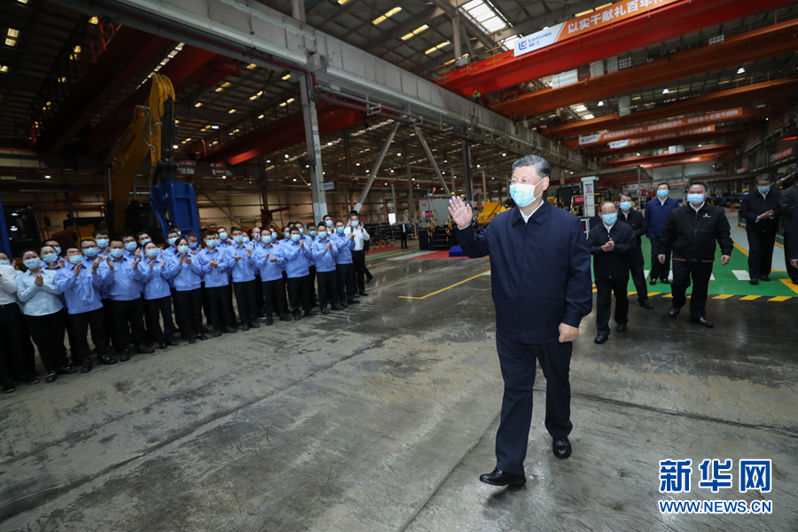 習近平總書記還走進企業研發實驗中心半消聲實驗室、挖掘機裝配生產線,向技術人員、一線工人和管理人員了解相關技術細節、生產工藝等。