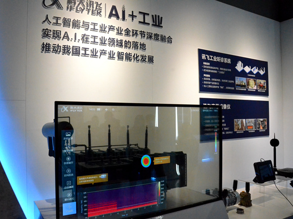 西海岸新區科大訊飛未來港內展示的通過分析機械異響診斷機械故障的技術。人民網記者 孫博洋攝