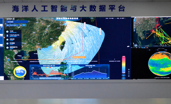 西海岸新區海洋大科學中心里的海洋人工智能與大數據平臺。人民網記者 孫博洋攝