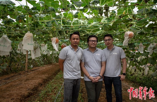 4月18日,廣東省東莞市企石鎮舊圍村,三名香港青年黃惠銘、林平治、楊漢華在自家農場的南瓜棚里。
