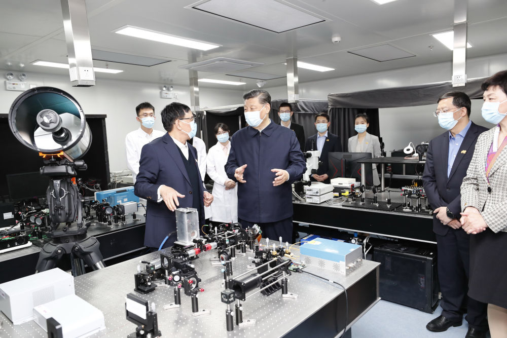 ↑2021年4月19日,習(xí)近平在清華大學(xué)成像與智能技術(shù)實(shí)驗(yàn)室同師生們親切交談。